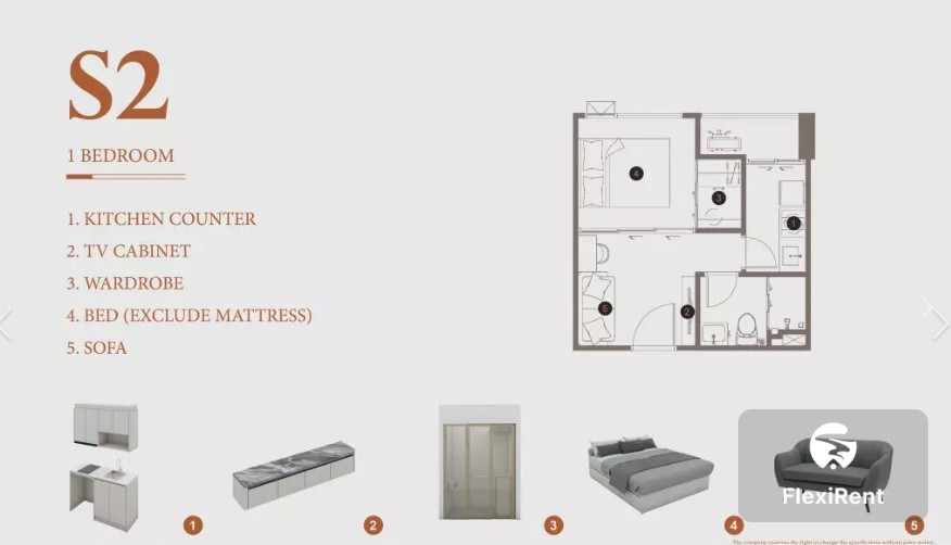 The condo is located on Sukhumvit Road, near BTS Punnawithi. ( S2 ) 1 bedroom , 1 bathroom , 1 multipurpose room