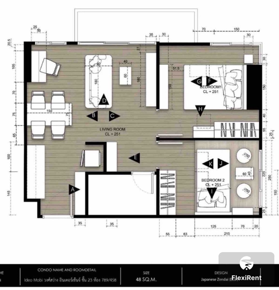 ขนาด 48 ตร.ม. 2 ห้องนอน 1 ห้องน้ำ